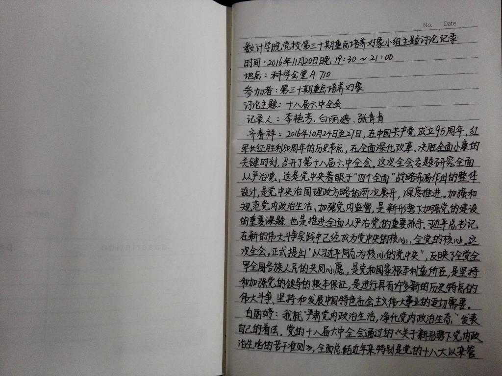 2016年11月20日晚7点半,在中共世界杯2026官方网站党校相关教师的指导监督下,公司第30期重点培养对象培训班在科学会堂710举办了十八届六中全会心得体会为专题的小组讨论。第30期重点培养对象培训班全体成员共27人参加了此次小组讨论,此次讨论由负责人齐春祥主持。