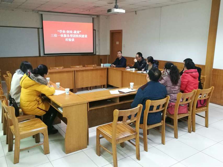 会议伊始,公司团委书记陈立记老师以学业–创业–就业三位一体服务型团组织建设为主题对公司团委的工作开展情况进行了深入浅出的汇报。他从诚信理念培养、核心价值引导、素质养成教育三个视角叙述了如何引导老员工树立正确的人生观、价值观、成长观。陈老师谈到,公司承办并圆满完成了第一届“创青春”老员工创业大赛和第九届“挑战杯”青年员工课外学术科技作品大赛,积极参与活力团支部评选和开展骨干培训等特色活动,并完成与专业有关的企业的对接,了解当今社会对人才的要求,对症下药,以点带面稳定发展。随后,陈老师又向各位新团干分享了服务性团组织建设的两个经验,第一:拓宽视野广开言路,及时对团委活动和服务活动进行宣传报道,使服务创新丰富有效;第二:常规工作不能悼以轻心,化繁为简,细心认真。最后,各公司新团干围绕如何选拔、引导和教育员工的主题进行了探讨,他们对公司特色活动均表示出强烈的兴趣,积极交流工作经验,真正有效地进行互动。