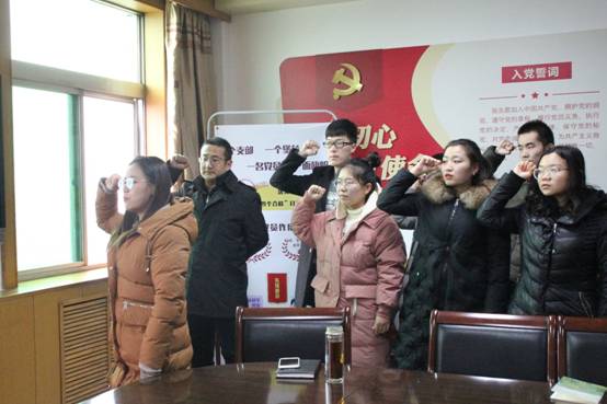 仪式上,新党员面对鲜红的党旗郑重宣誓,新转正党员一并重温了入党誓词。