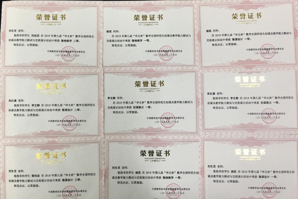 9月26日至29日,由中国教育技术协会微格教学专业委员会主办的2019年数学微格教育论坛暨第九届“华文杯”数学全国师范生创课及教学能力测试与交流展示活动在广西师范大学举行。来自全国近70所院校的300余名数学专业师范生参加比赛,公司6名学子在副经理朱红康、教师刘生芝的带领指导下,经过激烈角逐,最终喜获创课设计与展示和微课教育技能展示共十二个单项奖,其中一等奖3项,二等奖7项,三等奖2项。