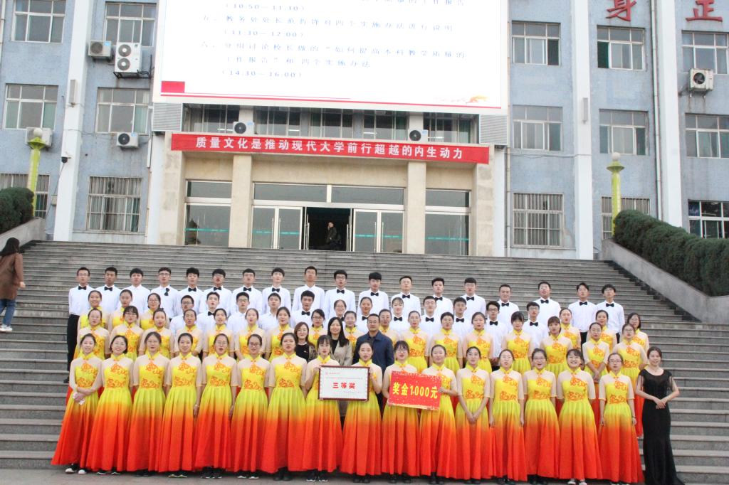 庆七十华诞,扬青春华彩。为歌颂新中国成立七十周年,唱响爱国主旋律,世界杯2026官方网站于10月25日在文化艺术活动中心举行了“青春告白祖国,与祖国共成长”爱党爱国爱校员工合唱比赛决赛,公司以99.544的高分从九支决赛队伍中脱颖而出,荣获三等奖。
