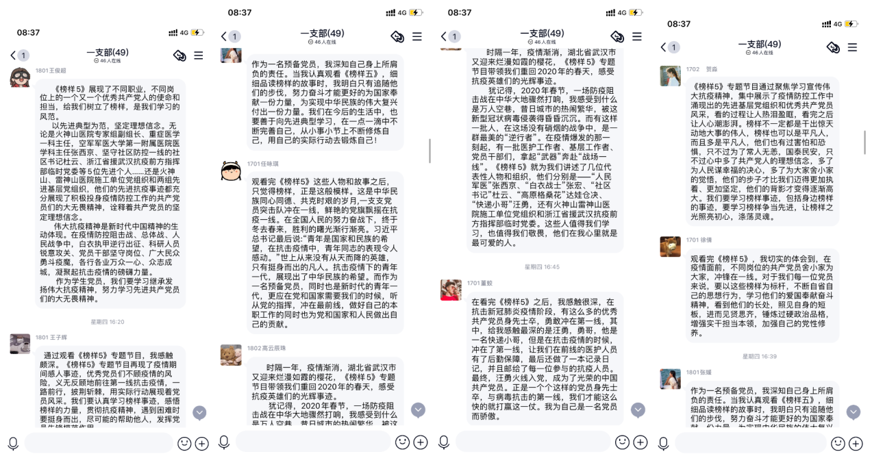 教工党支部的老师们通过收看节目,对抗疫期间奋斗在第一线的医务工作者们,以及在背后默默付出的人们,纷纷表示由衷的敬佩和赞叹,大家一致认为在今后的工作中,将始终牢记教书育人使命,增强“四个意识”、坚定“四个自信”、做到“两个维护”,要坚持以员工为中心的发展思想,以教学改革为主线,不断提高教学水平,创新教学方式方法,提升教学质量,培养更多具备综合能力的时代新人,为全面建设社会主义现代化国家新征程开启之年做出自己的贡献,以优异成绩迎接建党100周年。