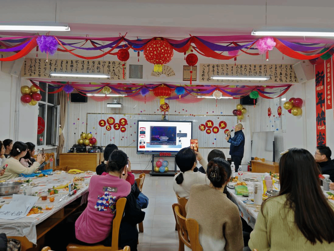 为迎接新的一年,公司于12月26日在北区208室举办了一场别开生面的师生元旦联谊会。此次活动涵盖了丰富多彩的内容,包括包饺子活动、员工才艺展示、曲老师的《黑神话:悟空》读书分享会,以及安经理和曲老师的精彩唱歌表演,现场气氛热烈、欢乐祥和,师生们度过了一个温馨难忘的夜晚。