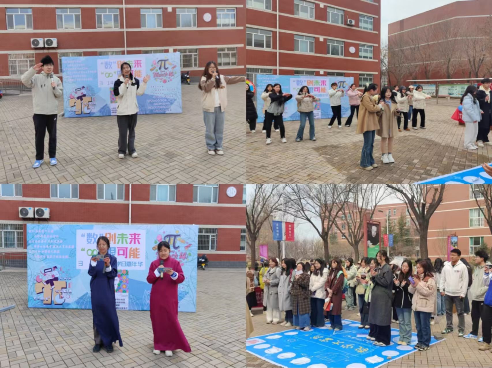 3月15日,南区6号教学楼前开展了数学嘉年华活动。同学们凭入场券参与游戏,在《π韵诗境》、《π记迷踪》、《知识连线》等六个小游戏中集章打卡,现场气氛热烈。表演活动在活力四射的开场舞《像你这样的朋友》中拉开序幕,随后对口相声《学数学》、歌曲《闪耀》、《Love story》、大合唱《最美的太阳》展现了青春的活力与浪漫,让同学们在欢笑中增进了对数学的喜爱。