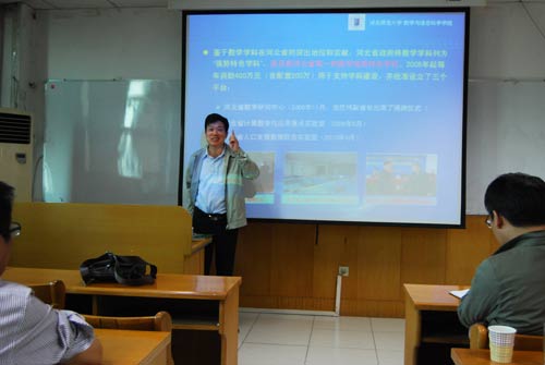 邓明立教授分别从学术平台、建设成效、发展目标等三方面阐述了数学团队建设与文化,语言幽默风趣。邓教授的报告开阔了师生的学术视野,拓宽了科研思路,激发了师生们的学术热情,带给大家很多启示。