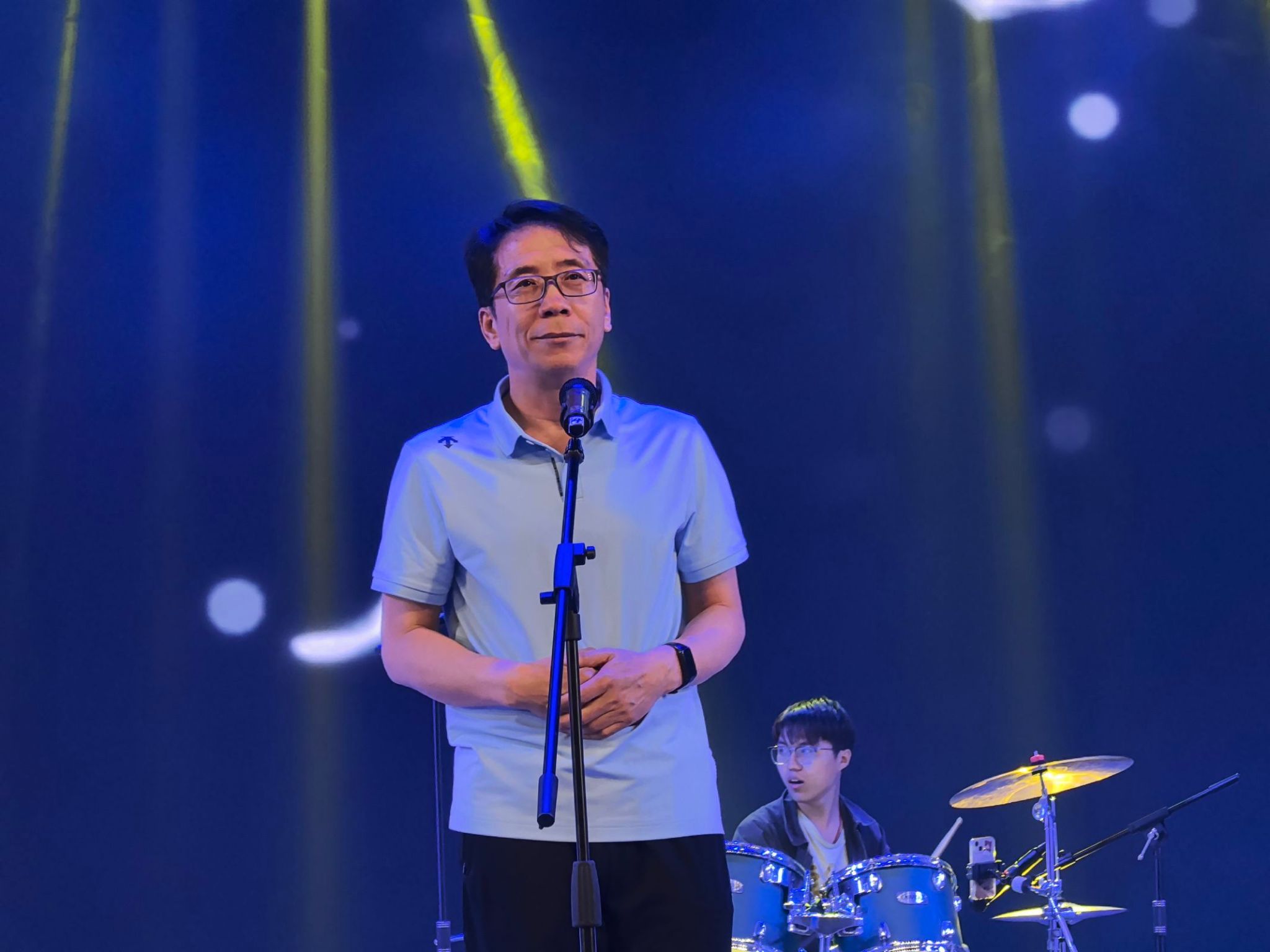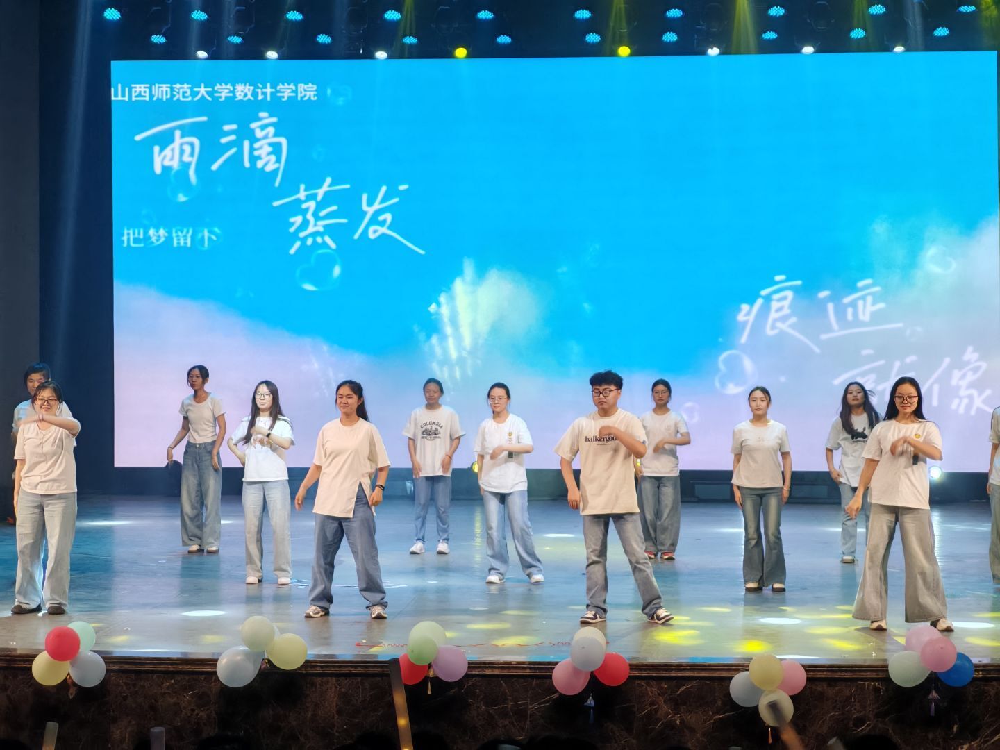 晚会节目形式多样,舞蹈、歌曲、朗诵、乐队演奏等节目精彩纷呈。毕业生辅导员们深情朗诵《守望者的告白》,字里行间满是对毕业生的期许与不舍;舞蹈《寄明月》用柔美的动作,尽显古典与青春融合之美;音乐公司张佳辉同学带来的竹笛独奏《上》带领大家步入清新雅致之境;哑春乐队的节目《春风十里》带动了全场的热情;安立坚经理带来的经典歌曲《海阔天空》则直接将晚会推入高潮,现场掌声和欢呼声此起彼伏。
